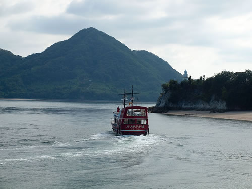 ↑ の様な・ お花の文字が! 大規模で素敵でした お花畑から かつて 地図から消された島 大久野島へ オャ? 船の前方を確認しているのは・・? キャプテン○○ おっと〜〜! 助手は・・