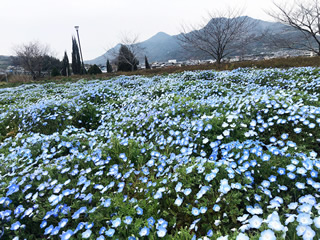 ひさしぶりの? 気分転換にいつもの公園に! 3日程度の開きで・・・・?? o(*^▽^*)oあはっ♪ すこし薄曇りだったけど 風は冷たくなくて・ そういえばこの山の姿 小さいけれど屋根型! 公園は ネモフィラが満開! とても癒されます。