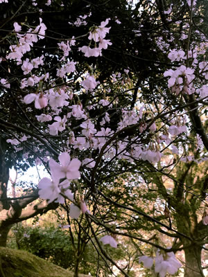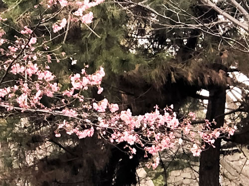木立の中に 1カ所だけ華やかな色彩が! 可愛い桜 ここだけ特急の春♫ 丸亀城の標準木はまだまだ堅いつぼみ 庭をワンコと散歩する人・ 子供達の声 周りを見渡すとマスクをしていない人が多い! 香川の第1号サンはこの町から・・ で・・ ですが どの辺りの範囲で仕事したので・ 用心のために・とか (患者2号になりたくない! 新型肺炎なんて!ネ) 気の重い仕事から一時解放されて そして