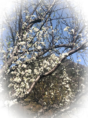 青空の小道に たんぽぽが 今にも飛び立ちそうに すっかり春めいてきました もう 冬のコートはいらない ぽかぽか日差し 杏 だと思うのだけど・・?? 違うかも? そそ!! 燕さんが忙しそうに飛び交って居ました