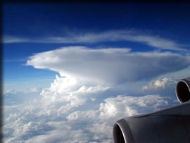 私どもの飛行機も雲の中をダーッと揺れながら、雲のないところまでバーッと駆け上がっていきます。すると、また操縦席からの声です。