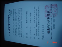 今月のは当選7件で、アンケート1件。先月よりペースが落ちていますが、これが、普通だと思います。 外食は御食事券。旅行は入場券。どこに行くにも懸賞あたらなきゃ行けないんだよ・・・。(by家族) 最近主婦の本で読んだ“当たるコツ”で一番笑えたのが、安月給の夫に仕事帰りに出させると当たるという話。 きっと「夫の安月給じゃ買えないのでください」とか書いてあるんだろうな。 負けずに今夜も書くぞー。