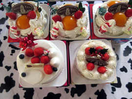 そして、食べなれている桃の乗ったケーキは、サンタさんの顏が今年からリニュアル。娘曰く・・・