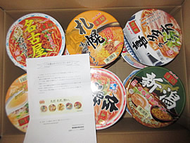 購入者がカップめんの蓋についているID応募で、抽選でした〜。 全国区で3か月間抽選期間があって、クオカード2000円5000人、非売品ラーメンが1箱5000人に当たるものでした。 12食を2箱買って来て、24食分抽選した結果、6回当選!(^^)! クオカードは当たりにくいので、「もうダメだ〜と」挫折しましたが、ラーメンコースは、相性が良かったと思います♪
