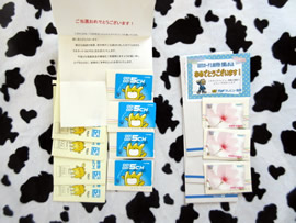 キッコーマンといえば、前回、私の周りのケーマーで、ペアパスが当選したり、貸切パーティーが当選していたんです。 いつも当選報告のメールをくれる近所のケーマーも「前回ペアパス当たったばかりだったから、今回はどうせ2回連続当たらないと思って出さなかったよ〜」と。 1回前の懸賞で、まわりのみんなが当たっていると、次は、私の番かな〜と思い込んで、応募して正解でした。 ブルボンとカバヤは、当選の商品券の金額が選べなかったけど商品購入で当たるキャンペーンでした。 一番、下の賞ですが、当たって良かったです(*^_^*)