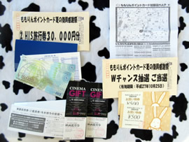 「次は、私も当たるといいな~」の「私」の順番が早すぎて、夫と一緒に笑ってしまいました~。 いつも というわけで、HISの旅行券が3万円分が当たり、無期限で使用可能です。 映画券は、抽選会のガラガラで子供が当たったので、懸賞当選には含めませんが、ついでに。 商品券が当たるテレビ局のクイズは、(1日10人×5日間)で、締切が、1回目と2回目がありました。 クオカードは夫に渡して、ガソリンを入れてもらっているので、助かります♪