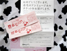 やさしいごちそうカタログ(2000円相当)は、森永乳業です。 本賞のほうが、1か月遅く届きました。同じスーパーの懸賞でも、W賞が先ってこともあるんですね。 日焼け止めは、フリーペーパーで当たりました。ヤクルトの商品はお高く、1800円するので、効果も期待できそう。ドールのネクタイは、ネット懸賞です。 お盆中は仕事なので、当日、仕事になってしまったので、「赤毛のアン」公演は今年も行けずです。30通は書いたと思います。 今年は、舞妓はレディの主演女優さんが、アン役だったんですよね~。