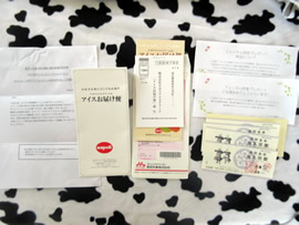ほかのメーカーで当たったパスポートもあるので、舞浜のホテルに泊まって、全員で楽しんできました! キャラクターより先にホテルのロビーで、夫が 冷凍庫を開けてアイスを待っていたら、まさかの、「いつごろ届けたらいいでしょうか?」的な(笑)申し込みはがきが届きました。 ナポリアイスは東北サンネット(生協)×森永さんの当選品です。