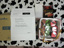 今月2度目のアイスです(笑)今度は、現品が届きました。 いろんな味が入っていて、テンションあがりました~。いろんな味があるので、じゃんけんで、争奪戦です。チョコ入りで濃厚でした。 すっかり夏が終わって寒くなった頃に届いたので、「真夏に欲しかった・・・」というのが、本音ですが、夏休みのおやつを買って当たったので、だいぶ応募枚数出せたような気がします。 ちなみに、キャンペーンが無いときは、忙しいから簡単なものだけど、おやつは手作りしています。