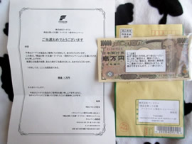 現金1万円の当選はフードリエのバーコード3枚貼って応募するものでした。 前回、同社のリサとガスパールの水筒が何十通も出してはずれたので、フードリエは相性が悪いってがっかりして1通応募にした記憶があるんですが、不思議とそういう時って当たるものですね。 1万円の書留がクリスマス前の18日に届いてテンションマックス♪♪