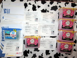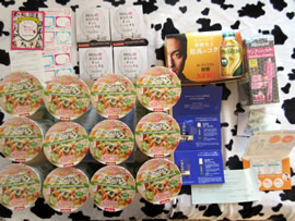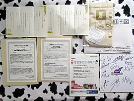 あと、15個はるさめヌードルを買ってもらったエコバック。キャラもの好きです。 農協牛乳3本買って、応募して当たったボンズのサインです。福島のバスケットチームなので、応援したいです。
