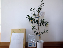 今年も苗当たりました。外に出すといつの間にか枯らしてしまうので、去年も、台所で毎日育ててました。 椿2本になりました~♪