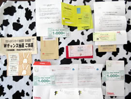 金券は、だいたいが商品を購入してレシート応募です。 本賞が1000円当たるものなのですが、絶対毎回当たるものでもないので、切手代を引いて、いくら分買っていいか今後は検討課題になると思われます。 ただ、チリも積もれば山となりますので、給料日前に、金券が財布にあるだけで心強いものです。