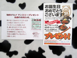 せっかくなので、行ける人にあげました。 平日は共働きでお弁当を持っていっているので、毎週土日は家族そろって外食して歩いているので、ラッキーです。 今月は、2軒の食事券が当たりました♪