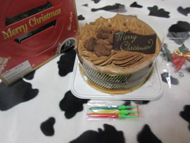 トナカイならぬスーパーの店員さんとサンタ姿の副店長さんがケーキをもって自宅に来てくれちゃいましたよ。 子供も「トナカイに乗らないんだね~。赤い車なんだね~」と(爆笑)