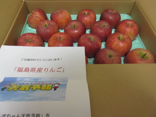 テレビ局からリンゴの詰め合わせを頂きました。オープン懸賞です。 数も思ったよりたくさんりんごが入っていました。当たるときは当たるようですね。 ただ、この次のあんぽ柿プレゼントは外れています。 懸賞は、そう簡単にいかないですね。 でも、果物詰め合わせが次々とお歳暮のように当たって幸せです。