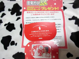 無駄な出費にみせかけて、どうせウィンナーを買わなくても、何かお弁当のおかずを買っている予算ですから。まぁいいかと。 商品券は、モニター謝礼です。 きちんと回答しているので、毎月これだけは届きます。 太鳳ちゃんクオカードですが、冷凍庫がいつも雪見だいふくでいっぱいでした。 3社見つけたのですが、女優さんのクオカードとかアイドルのクオカードとか人気なので、全部複数口出してます。 冬に雪見だいふくを山のように買うって大変です。