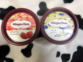 スマホのQRコードで引き換えでした。 ローソンで売っていた商品の中から、3品のうち2品ということで、バニラとストロベリーにしました。