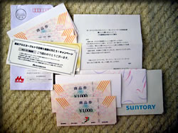 困った時の商品券~♪ ・・&DSソフトと映画チケット。 この時期映画のチケットプレゼントが多かったので、そればかり当選したような気がします。 また、今月も土湯温泉日帰り入浴券当選しました。 1年間有効なので、今年の年末にでも・・・(気が早いですか?)。