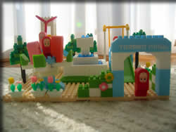 キューピーのスパゲッティーソースを購入して、応募しました。 ダイヤブロックで、入っているブロックを組み立てると、「たらこランド」が完成します♪ 娘と一緒に2時間もかけて作り方通りに完成。思わず達成感が・・・。顔の部分は、シールです。 今は、ロケットや車など、自分で考えて作って・・・