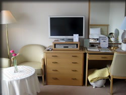 ベットも大きいので、寝相が悪くても大丈夫。落っこちません~。 もともと部屋が広いので、このくらいの大きさでも、ゆったり眠れます。