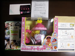 にわかサッカーファンですが、ドイツのタコ凄かったですね~。 P&Gから、B賞の牛肉2パック入りが、きました。あと、磐梯熱海温泉優待券が5000円×3通きました。それとりりこ×2です。 全国でカゴメのりりこをプレゼントしていたんですが、地方によって植えどきが違うので、発送も西日本から順番でした。今年はこないのか?と思っていました。 おしゃべりかぶちゃん人形は、自分の声を録音できます。面白いし、入院時は、いいですね♪これも、うちの娘喜びそうです! まほうのティーセットは、パイロットインキのフリクション2億本販売記念で、全国で600人に色々なものが当たるものでした。 男の子には別なおもちゃで、女の子100人には、この「まほうのティーセット」が当たります。