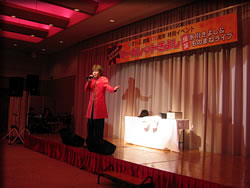 「ボクの洋服閉めてくれるひとは、居るかな?」で、Jさんの息子さんが挙手。一番若い参加者で、まだ1歳にもなってなかったんですよ。ナイスな突っ込み、面白かったです~。 普通だったら赤ちゃんは、泣いちゃう音のボリュームですが、楽しんでくれて良かったです。将来、楽しみですね~(#^.^#) このマーガレットきよしさん、前の日もステージがあり、宿に1泊したそうですが、筋肉がないから、B´Z稲葉さんの真似をしようと油性マジックで筋肉を書いてたんです。 で、温泉で、前日「何??」と聞かれ「筋肉」と答えたそうです。いや~、おっかし~いし。私なら、温泉で黒マジック見たら、笑いこらえるの必死かも? でも、かなり気のいい気さくなお兄さんでしたよ~。カールスモーキー石井も似ていましたし、秋川雅史も上手でした。