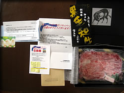~と思いつつも、肉のコースを選択。 全国区だったので、2~3通じゃ、どうせ当たらないや~と思っていたんですが、山形の黒毛和牛の当選通知が!!!