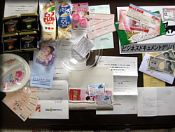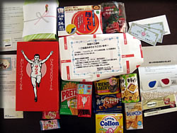 お弁当箱は、全国区のママーの冷凍パスタのバーコード1枚貼る懸賞で、3通応募して1個当たりました。 びゅう商品券はコンビニ懸賞で、PSPの残念賞でした。900円レシート貼り付けで、3通応募していたので、トントンですね。お菓子の同じコンビニの別の懸賞のW賞でした。