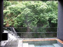 でも、一番嬉しかったのは、絵を切り取ったかのような、露天風呂。大自然に囲まれて、マイナスイオンが私の心の目に見えて・・