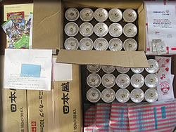 あとは、復興ジャンバーとか米とかジャムとか化粧水とか量だけいっぱい届いています。これも、みんなに分けられるので、良かったです。(お福分け~) 丸美屋のふきんは、マーク6枚を送ると全員貰えます。私マークのストックとかしてないので、釜飯の素と麻婆豆腐の素を18個買って応募しました。 さらに、11月も買い続けているので、相当な数、丸美屋レトルト食品ストックが。買いすぎで…さすがに夫にも気付かれ、「味付けご飯ばっかだな~、懸賞か?」と。 圧力鍋かフライパンも、もしかしたら当たるかも??というキャンペーンですが、今まで一度も当たったことないので、今年は頑張りすぎましたね~。