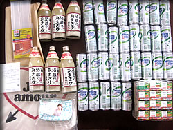 私は、旅行や当選品の写真は撮るけど日常写真は撮らないので、いい記念になります~。特別な日ではない日の「家族写真」が一番思い出になるのではないでしょうか?? クロレラも2度目の当選です。30本購入し1通出せたのですが、90本購入し、3通応募しました。根性は、あります(笑) 私と娘で、こっそり飲んで消費しました! バウムクーヘンもネット応募です。 ドリンクが、懸賞2件で42本、モニターで6本頂きました♪ 同じ種類ばかりですが、何種類かあると交互に飲めるので、助かりました。 あま酒は、お友達のブログに情報が載っていたので、応募したら先着に間に合いました。酒蔵のあまざけ、おいしかったです(*^_^*) 食糧庫にしまいきれないので、実家にも飲み物系は分けています。あまざけが、おいしいって絶賛されました。