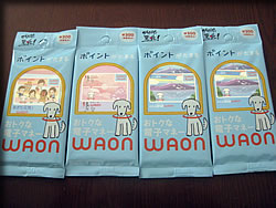 1000円をチャージしないと1000円分のポイント(1P=1円)が受け取れないですが、逆に言うと1000円で2000円分の買い物ができるので、全品半額で買える計算なので、かなりラッキーです。 でも、WAONどうしのPは、やり取りできないので、1回の支払いで1枚しか使えません。47都道府県のデザインオシャレですよね~。 イオンにミスドが入ってたので、使えますか??と聞いたらOKだったので、いっぱい買いました!