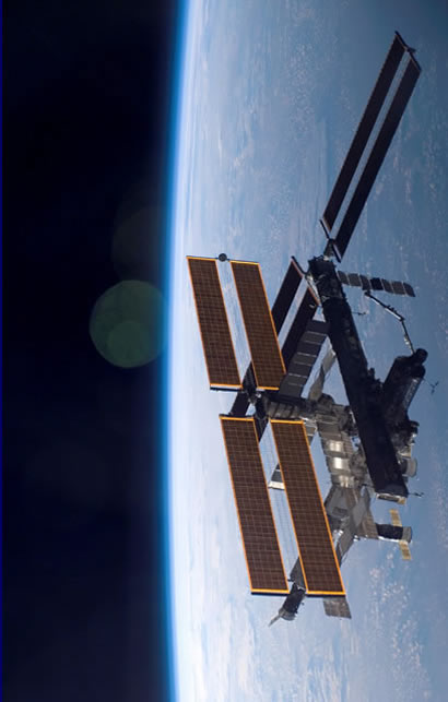 (※右の背景写真は、スペースシャトル・アトランティス号から撮影されたISS(国際宇宙ステーションのハイビジョン画像です。)⇒