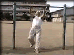 鉄棒に向かっている人影。(カメラ寄っていく)