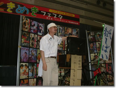 ご覧になれるかと思いますが、当日は1950年代の映画のポスターを背景に同じく1950年代の歌謡曲をBGMに上演いたしました!!