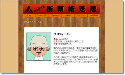 知り合いが趣味で紙芝居師のHPをつくってくれました(笑)