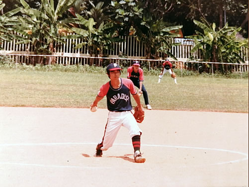 古い手帳に戦績がしるされていました。 ◆4/22 春季リーグ第1戦 丸紅戦 16-4 5回コールド完投勝ち ◆5/20 第2戦 JJS(日本人学校)戦 7-1 7回完投勝ち ◆6/3 第3戦 ジャニックス(日商岩井)戦 6-5 7回完投勝ち ◆6/24 第4戦 アストラ・トヨタ戦 9-6 7回完投勝ち ◆7/8 第5戦 Tiffico(帝人)戦 ◆7/15 最終戦の日本大使館戦は大使館が選手が集まらず不戦勝。 5勝1敗で春季リーグを終え、同率のアストラと1部リーグ昇格をかけて再戦することとなったのでした。
