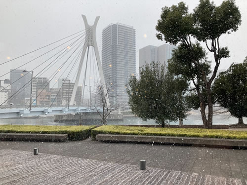 ◆ 現在/東京の雪 2022年の初出勤となった1月6日(木)は東京23区に大雪警報が出され、昼休みに外に出た時には既に降り出していました。