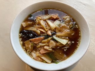 中央大橋を渡っていくのがしんどかったので、橋の袂にある「上海ダイニング」で五目つゆそばをオーダー。