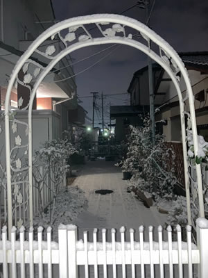 上尾の家にたどり着くと庭にも雪が積もっていて、駐車場から庭に入る階段でまた滑って転びそうに・・・