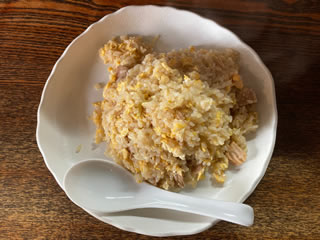 おいしいのだけど、ぼくはチャーハンはパラパラ系であるべしと思っているので・・・