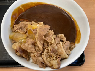 肉だく牛黒カレー。 牛丼に黒カレーをかけた感じでバランスよくないかな。