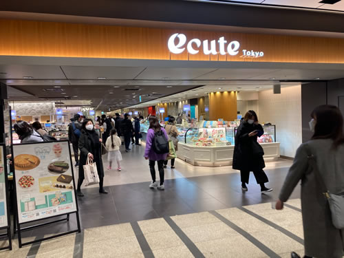 東京駅中のエキュート。 入口にイベントスペースがあり、期間限定で各地の名店が出店している。