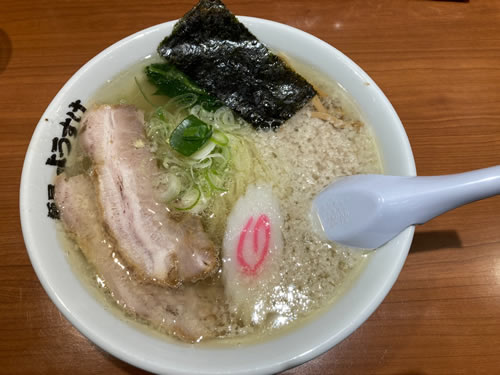 東京ラーメンストリート、「佐野ラーメン ようすけ」の塩ラーメン(背脂入り)。