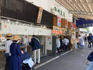 ラーメンを受取って店の前の通路を隔てた道路沿いに並べた低めのテーブルで立ち食いするスタイルで、博多ラーメンより更に細い極細麺なので、延びないうちに急いで平らげないといけません。