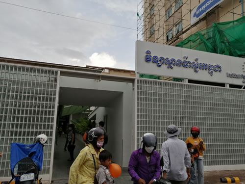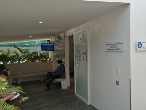 ホテルに戻ると熱も出て来て一時は38.5度まであがり、その日はホテルに泊まって翌15日コンポンチュナンに戻って宿舎の部屋で隔離生活開始。熱は37.5度前後で推移。 翌16日には熱は36.8度まで下がり、以降は37度を超えることはなく咳、頭痛の症状もほとんどなくなってきました。 隔離5日目の19日、宿舎でラピッドテストをするとまた陽性反応; 2回目、3回目のテストも陽性となり、24日、4回目のテストでやっと陰性になって胸をなでおろしました。 これで隔離生活解除となってよいと思うのですが、会社の規定に従って陰性確認のPCR検査のため、26日朝再度パスツール研究所へ出向いたところ、また陽性反応が出てしまいました。 コンポンチュナンの事務所でもクラスターが発生し、ぼくを含めて12名が感染しましたが、日本人はぼく一人、しかも他の11名(カンボジア人6名、フィリピン人4名、インド人1名)は隔離7日目のテストで皆陰性となり職場復帰しています。 年をとると免疫力おちて回復が遅いようです・・・ パスツール研究所のこの部屋のカウンターで鼻に綿棒を突っ込まれてPCRテスト。