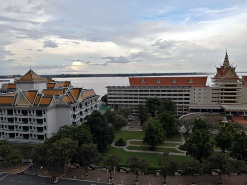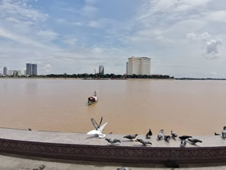雅楽やシャングリラなど行きつけの店がこの間は店を閉めていたので、イオンのレストランへ行くか、ハンバーガーやカップ麺、レトルトカレーなどをホテルの部屋でレンチンして食べるしかなく、寂しい食生活を送っていました。 今年の雨季は雨量が多く、各地で洪水の被害が報告されています。 例年だと雨季は11月には終わるのですが、今年は12月まで続くとか10月後半に集中豪雨が多くなるとかいわれています。 国道5号線の工事がラストスパートに入っており、11月中の完成を目指していますが、集中豪雨で工事ストップなどの事態が起こらないか心配なところです。 Emion Hotelから見たトンレサップ川。水位が高い。