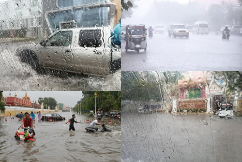 コンポンチュナンへの帰路。大雨で道路が冠水。