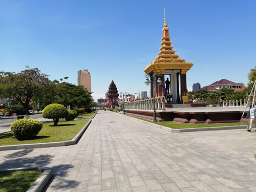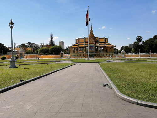 日本では最近ミャンマーの様子が報道されることが少なくなっていますが、あの穏やかだったミャンマーの人達が、一日も早く平和な生活を取り戻せることを願ってやみません。 今年6月まで勤務していた本社のグローバル人材開発センターでは、ODAで当社が増築工事をしたヤンゴン工科大学の学生数名を本社採用とすべく話を進めていたのですが、クーデターで大学を卒業できなくなり、カンボジアで待機のままとなっています。 プノンペン中心部は閑散として、王宮前も人気なし。